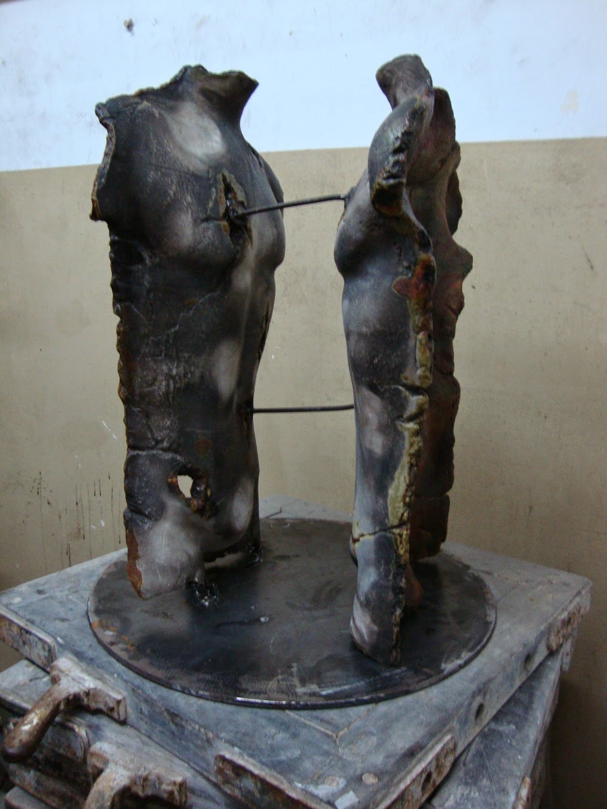 | Rafael Martín. El diálogo. Cerámica esmaltada y hierro, 1977 |